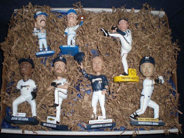 Jonathan Lucroy, Norichika Aoki, Trevor Hoffman, Jim Henderson, Jean Sequra, Gorman Thomas, and Charlie Moore. Boxes included.