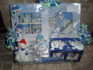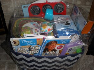 Mixing bowl set, "Frozen(Olaf)" waffle maker, 4 piece cookie cutter set, measuring cups/spoons, cookbooks, glass cutting board, "Frozen" cupcake stand, and more........