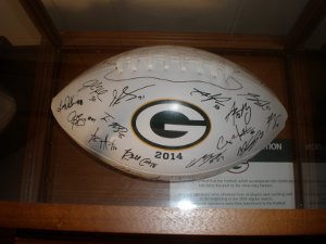 Collector's item! This 2014 football is no longer available unless you are in the right place at the right time! The football and certificate of authenticity are enclosed in a beautiful wood and glass case which is how it was obtained by the donors - in pristine condition. A perfect addition to your collection or a gift for the Packer Backer who has everything!